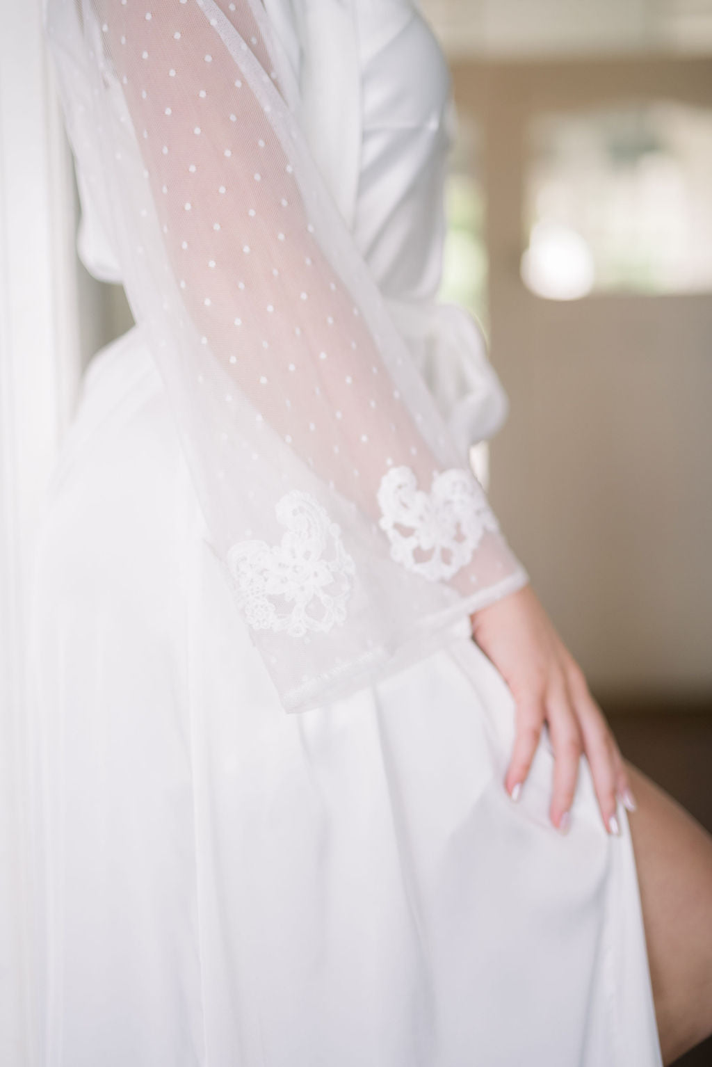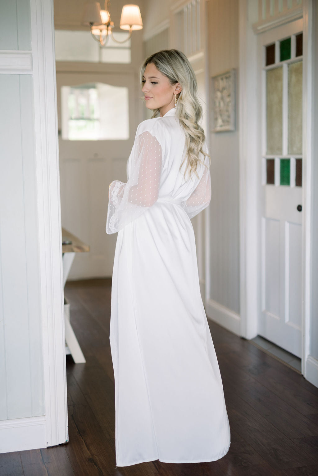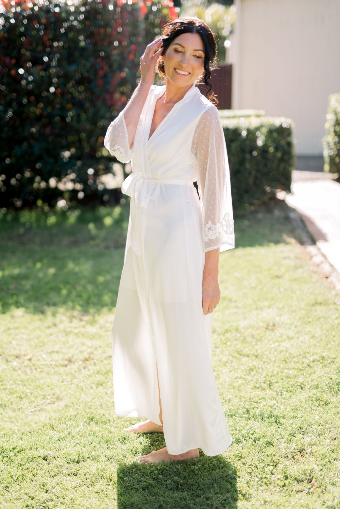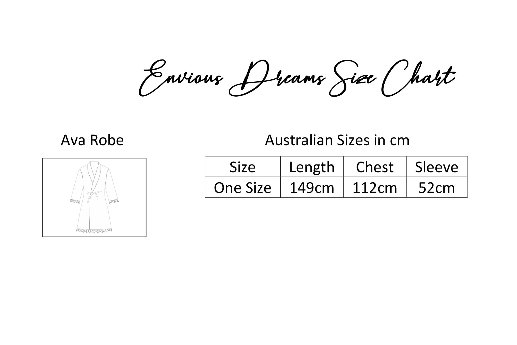 Our Ava Robe is a stunning bridal robe with a full length and beautiful sleeves. The satin fabric gives it a classy look on top of the full-length lacy sleeves with intricate details. You can make this gorgeous bridal robe your wedding robe and have fun with the customisation!