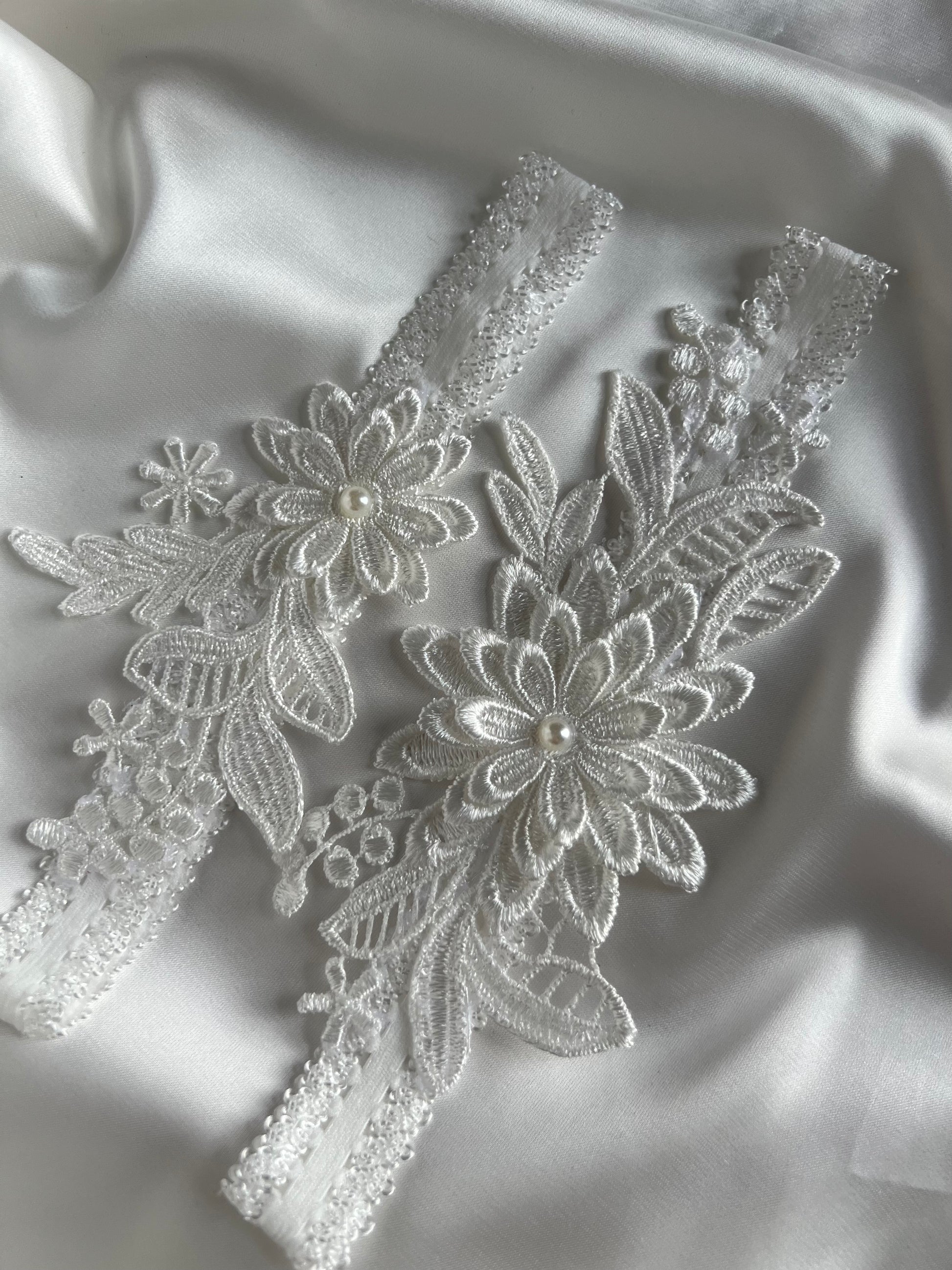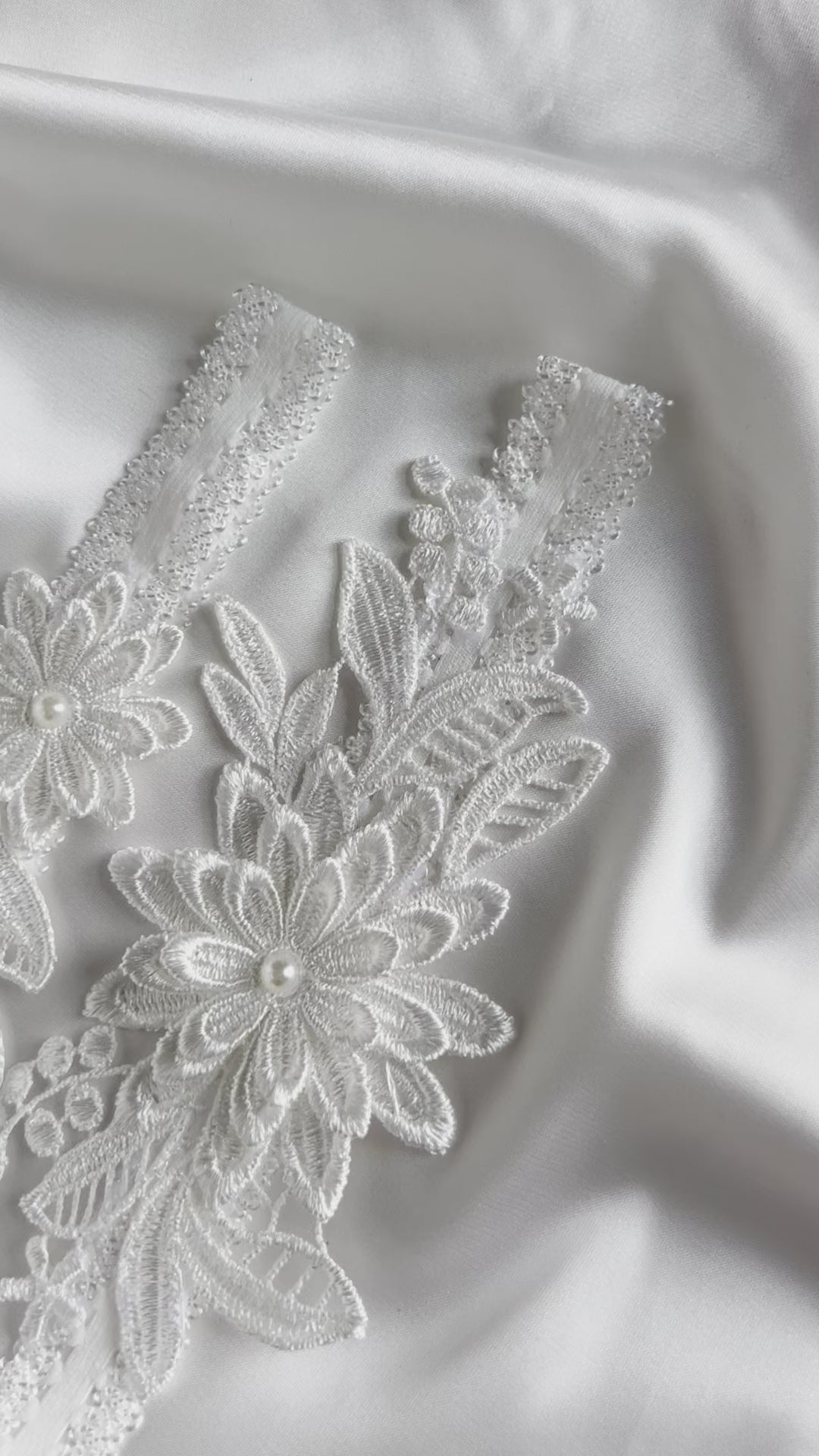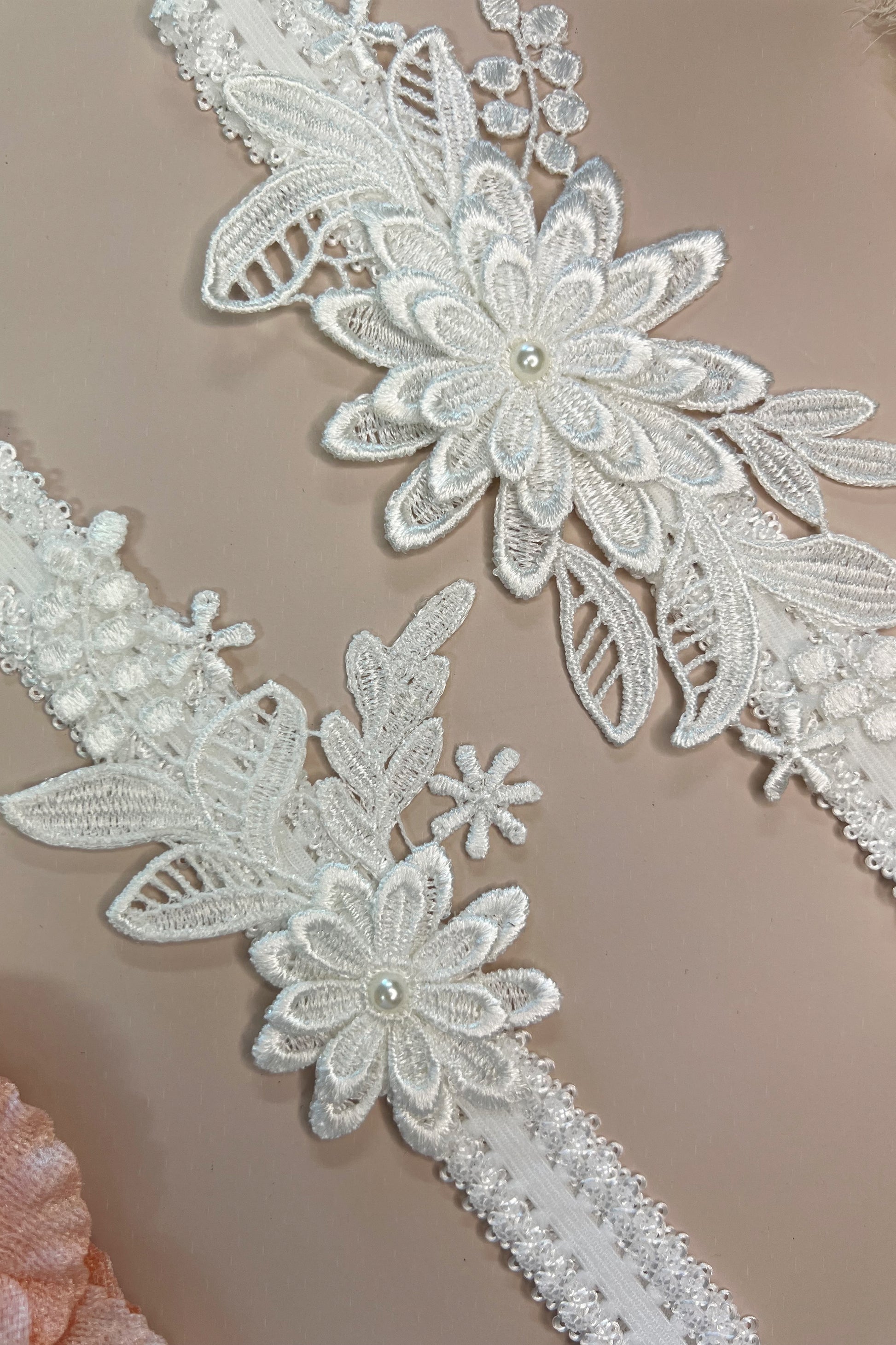 This stunning accessory combines timeless elegance with a touch of pearl detail to complement your bridal look. The garter features delicate floral detailing, adding a touch of romance and femininity.