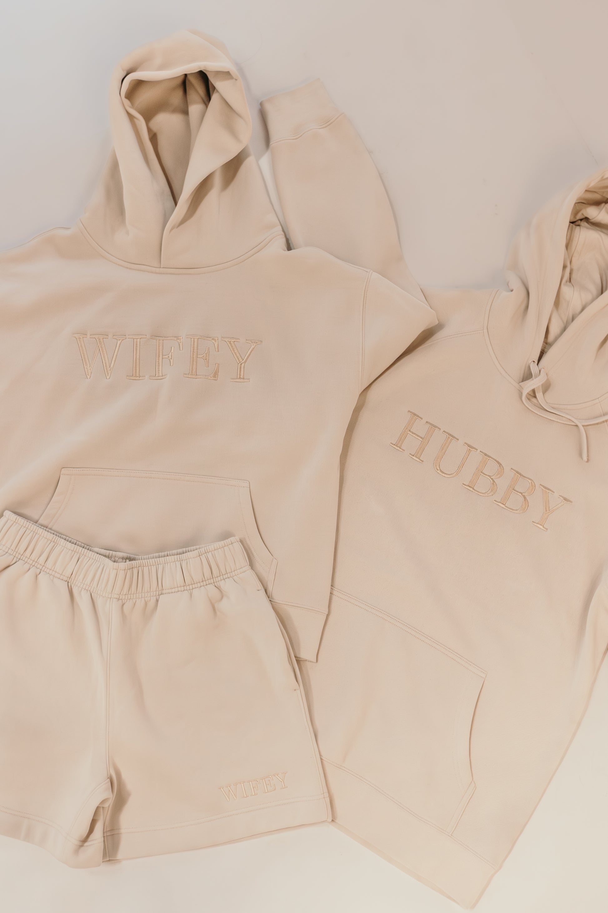 Hubby Hoodie bone with champagne embroidery