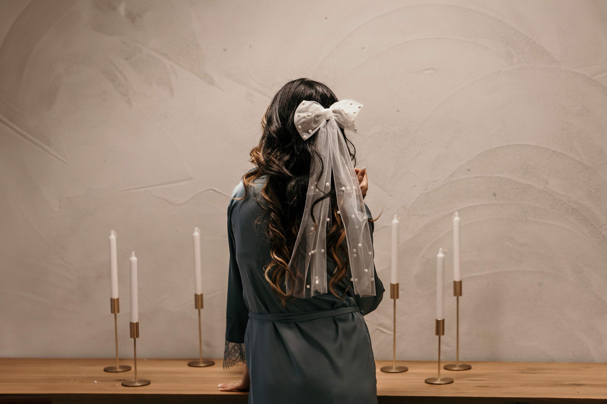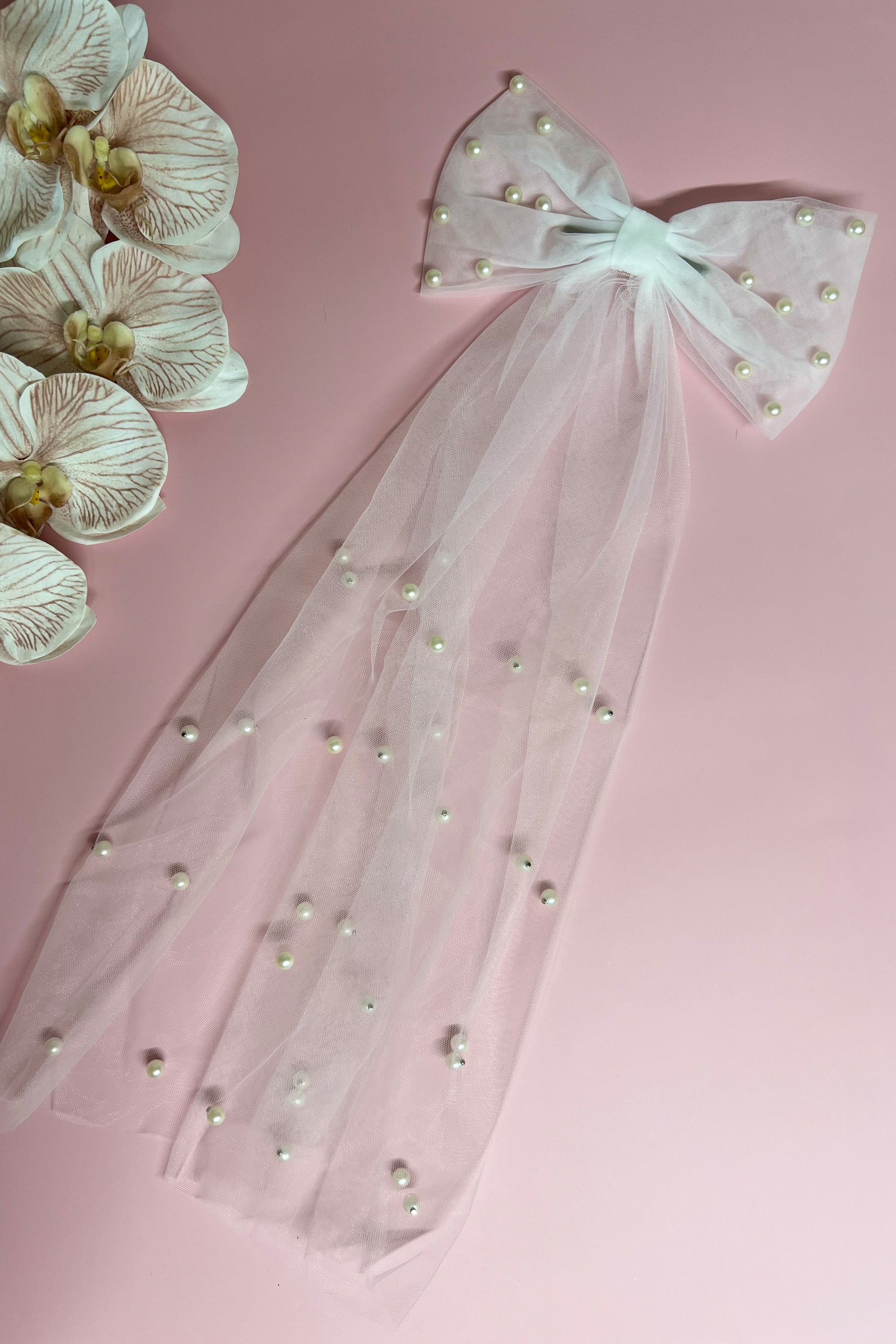 Get ready to make a glamorous statement at your hens party with our Savannah Pearl Veil featuring a luxurious pearl bow.