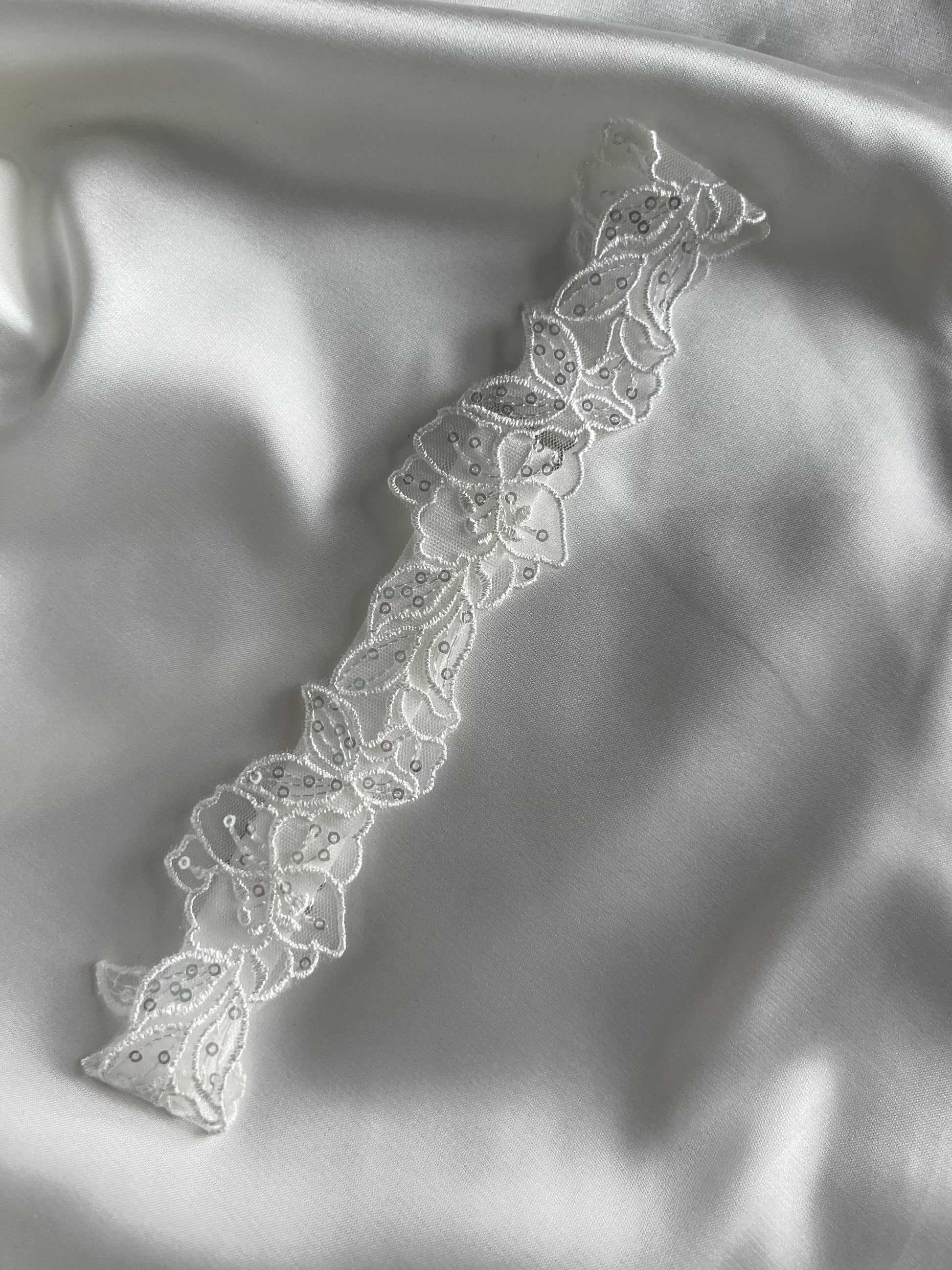 Elevate your bridal attire with our Stella Lace and Sequin Wedding Garter and make a statement that will be remembered for years to come.