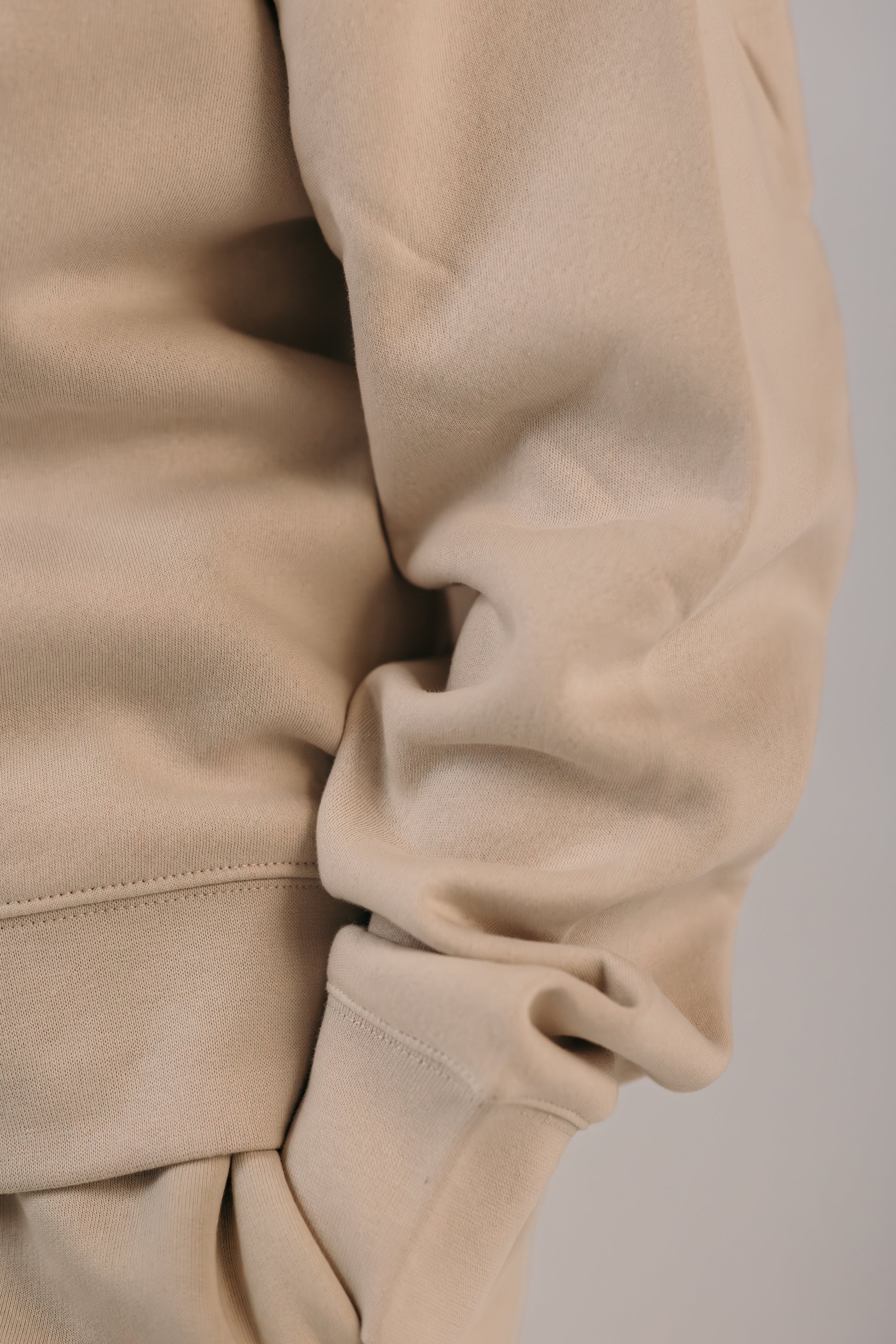 Pullover crew, drop shoulder, crew neck, sleeve cuff ribbing